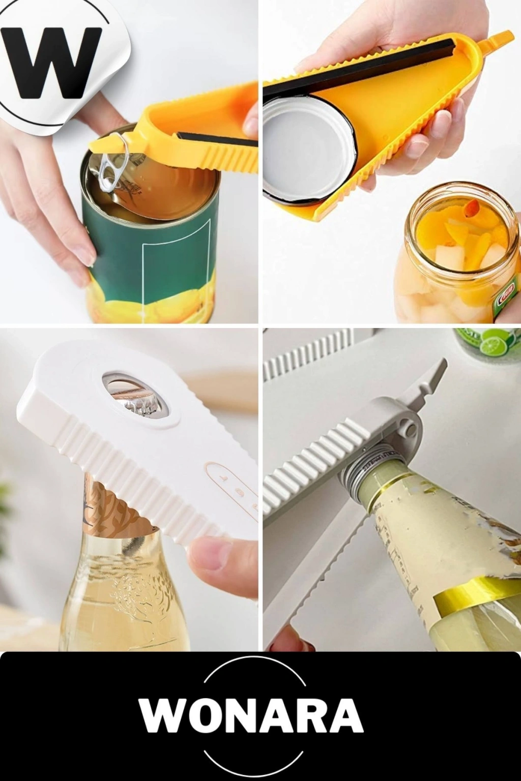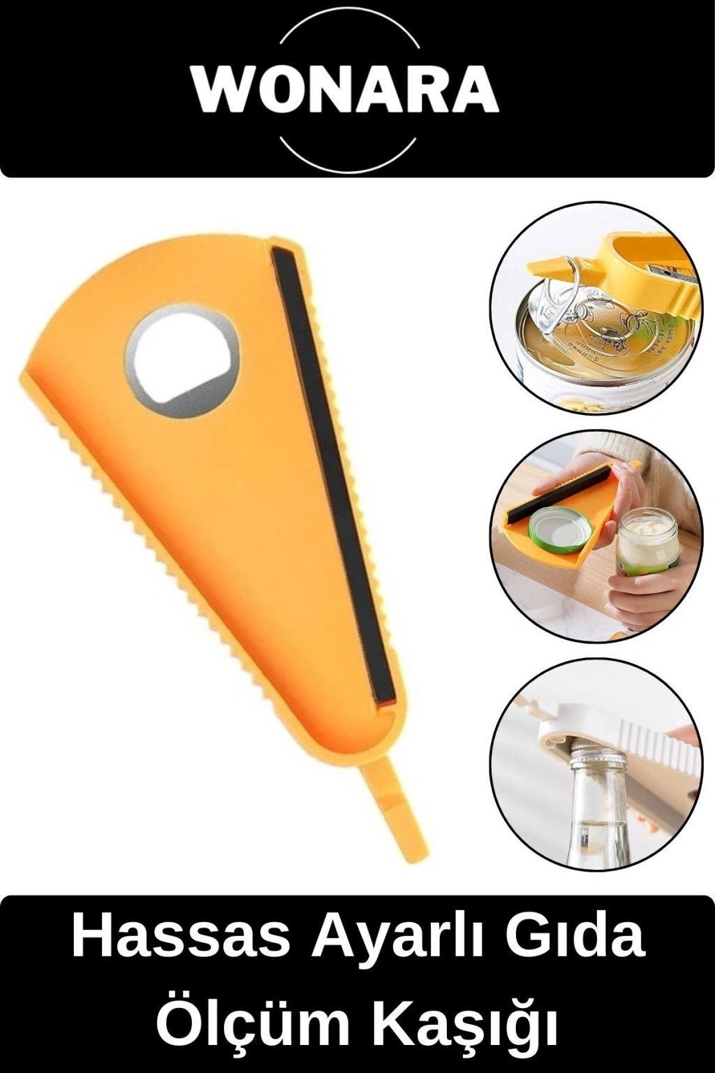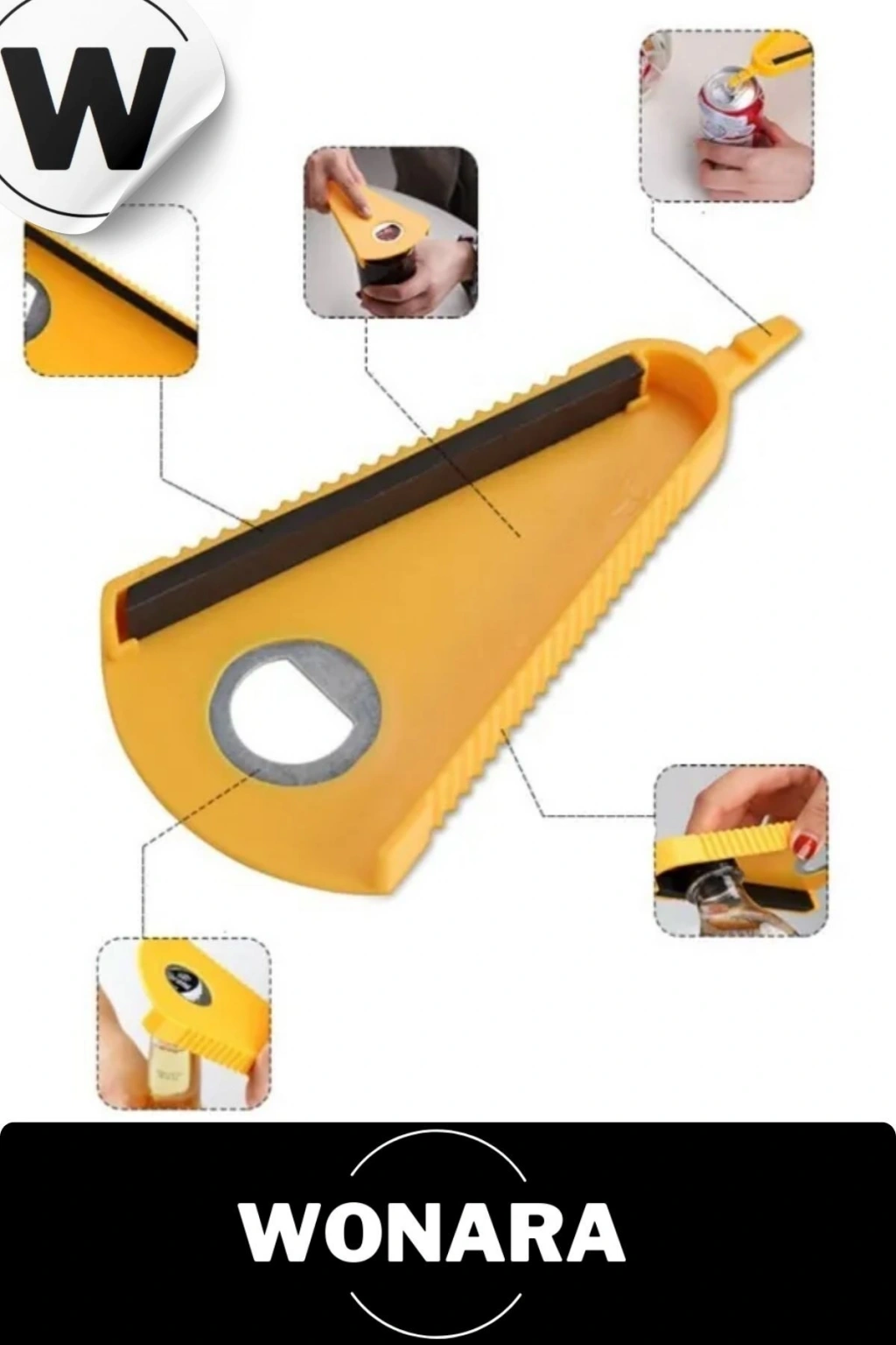 V-şekilli tasarım, büyük ve küçük şişe kapakları açılabilir. ; Yaklaşık 3 cm ile 7 cm arası kavanoz ve şişe kapakları için uygundur. ; Çok fonksiyonlu şişe açacağı: inatçı kutu veya plastik şişeleri açın, çekme halkası ile konserveleri çekin, kapağı çıkarın. ; Kaymaz lastik şerit, şişe kapağı ile sürtünmeyi arttırır, şişe kapağını sabitler ve kapağı kolayca açabilir veya sıkılaştırabilir. ;