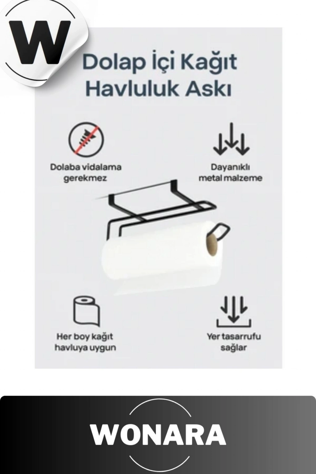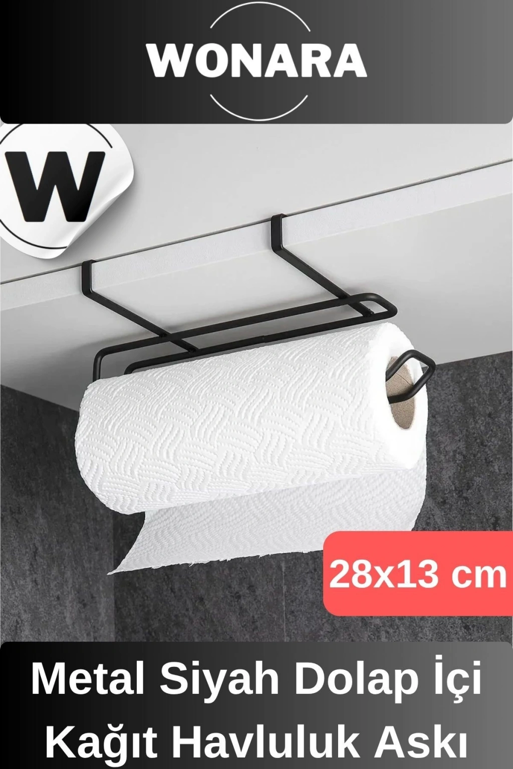 Ürün Özellikleri Siyah Dolap İçi Kağıt Havluluk Askı, modern tasarımı ve fonksiyonelliği ile mutfaklarda pratik kullanım sunar.; 28 x 13 cm ölçüleri sayesinde küçük alanlarda bile rahatça kullanılabilir.; Metal malzemeden üretilmiş olup sağlam yapısıyla uzun ömürlüdür.; Sık kullanıma karşı dayanıklıdır ve formunu korur.; Dolap içi veya altına kolayca monte edilerek kağıt havlularınızı düzenli ve erişilebilir bir şekilde saklamanıza yardımcı olur.; Nemli bir bez ile silinerek kolayca temizlenebilir, böylece hijyenik bir kullanım imkânı sağlar.; Paket İçeriği 1 adet Siyah Dolap İçi Kağıt Havluluk Askı