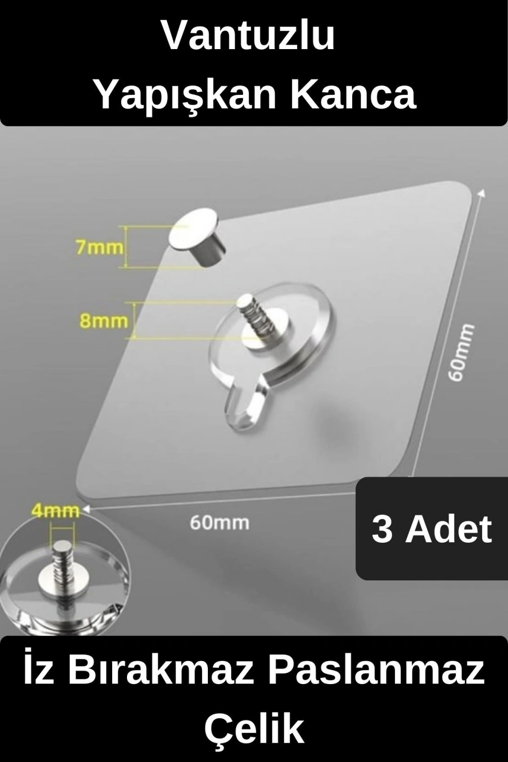 Dayanıklı Yapışkan Kanca İz Bırakmaz Süper Güçlü Vantuzlu Askı Cam Fayans Seramik Mermer 3 Adet