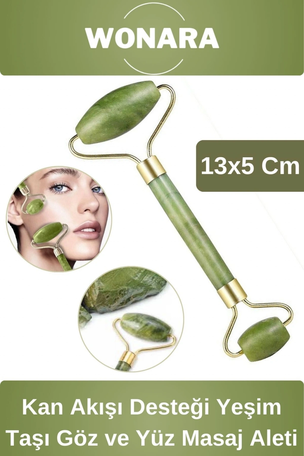 Çinliler binlerce yıldır en şanslı taş saydıkları yeşim taşını, bir işe başlamadan önce tutup güç alırlar. Yeşim taşının birçok sağlık sorununa iyi geldiği düşünülmektedir. Yeşim taşıyla yüze masaj yapıldığında siyah noktaları tedavi ettiğine ve cilt allerjilerini iyileştirdiğine inanılmaktadır. Ömrü uzattığına ve bedeni gençleştirdiğine inanılmaktadır. Ürün Özellikleri: Cildin pürüzsüz olmasını ve parlak görünmesini sağlıyor. Elmacık kemiklerinde ve gözaltında bulunan fazla yağların atılmasına yardımcı oluyor. Cildin üzerinde lenfatik sıvının, lenf bezlerine tekrar gitmesini sağlar. Bu sebeple cildin kan akışını hızlandırıyor. Yüzünüze uyguladığınız kremlerden sonra yeşim taşı ile masaj yapmak, kremlerin hızlı etki göstermesini ve daha çabuk emilmesini sağlıyor. Göz çevresine uyguladığınız masaj sayesinde, kronik sinüs ve bağışıklık sisteminin güçlenmesine yardımcı oluyor. Yeşim taşı,soğuk uygulandığında kılcal damarları küçülterek, gözaltı morluklarının azalmasını sağlıyor. Cilt üzerinde kırışıklık olan bölgelere masaj yapıldığında ise gerginliği alarak çizgilerin zamanla kaybolmasına neden oluyor. Kan dolaşımını hızlandırır, ruha sukunet verir. Toksinlerin atılmasını sağlar. Ürün Ölçüsü: 13 cm x 5 cm Paket İçeriği: 1 Adet 2'li Yeşim Taşı Yüz Masaj Aleti