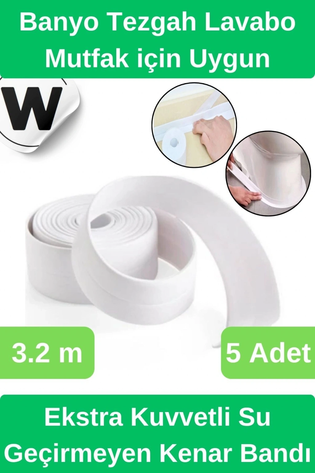 Su Sızdırmaz Bant Lavabo Küvet Kenar Bandı 3,2 m İthal Su Sızdırmaz Bant Lavabo Küvet Kenar Bandı 3,2 Mt ; Sızdırmaz bant uzun ömürlü bir sızdırmazlık sağlar ve mutfak ve banyo alanlarına profesyonel bir görünüm kazandırır.; ; Özellikle aile için tasarlanmış, çevre dostu ve toksik olmayan, çok hoş ve rahat kullanılabilir.; ; Kendinden yapışkanlı, anında üstün tutunma özellikli dekoratif sızdırmazlık bantı.; ; Ürün Özellikleri: Daha çok banyo küvetlerinde kullanımına uygun, su geçirmez yapısıyla sıhhi uygulamalar için idealdir ; Hızlı ve Kolay Kurulum için önceden şekillendirilmiş: Sadece birkaç dakika içinde yüzeye kendinden yapışkanlı bantları soyup bastırın.; ; Yüksek kaliteli PE malzemeden yapılmış, geleneksel PVC'den daha güçlü yapışkanlık ve yapışma özellikleri.; ; Su geçirmez, neme dayanıklı, küfe dayanıklı, yağ geçirmez, sağlam ve dayanıklıdır, profesyonel görünümlü bir görünüm sağlar.; ;