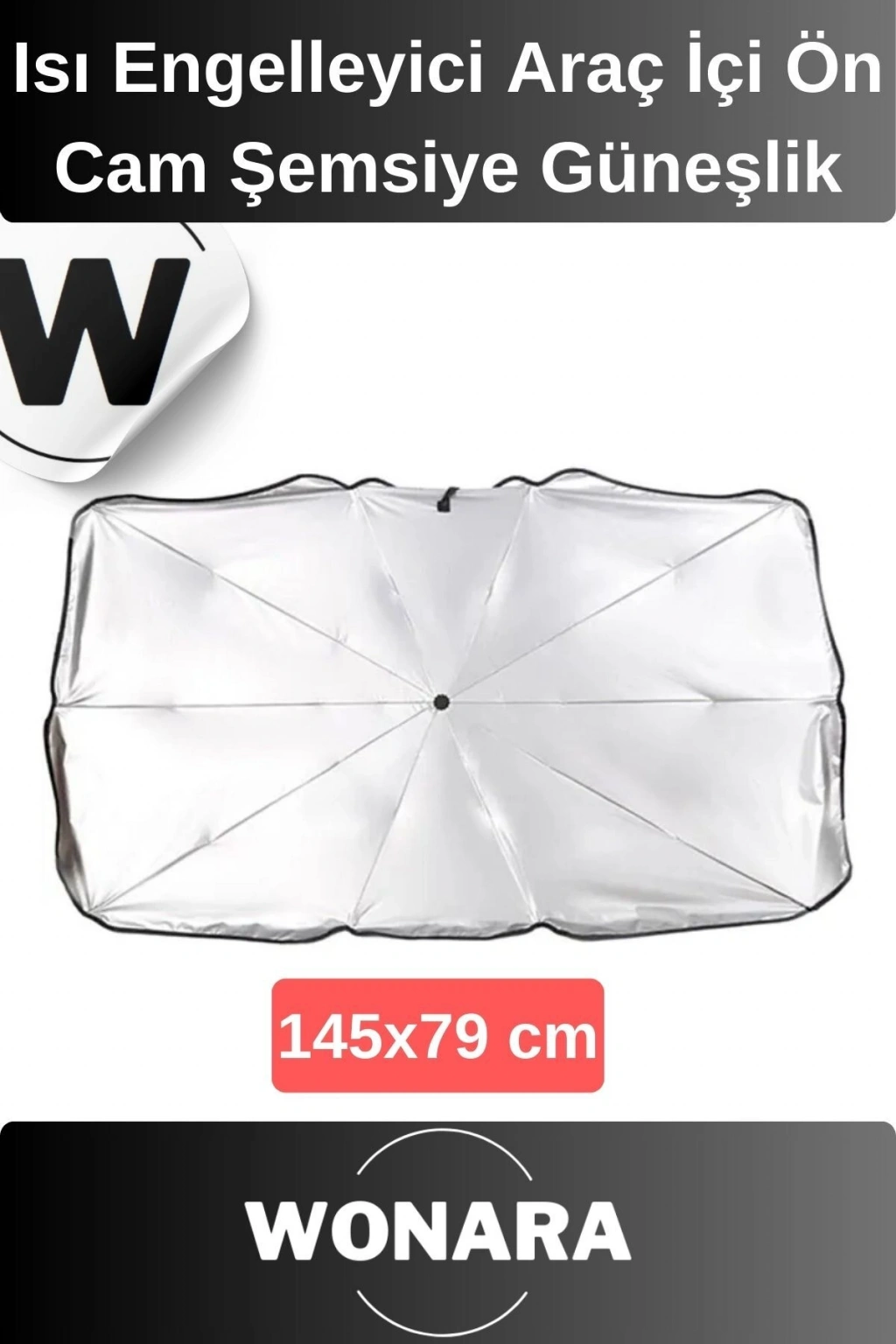 Ürün Özellikleri ; Titanyum gümüş kaplamalı ve 10 çelik kemikli, güçlü, dayanıklı ve korozyona dayanıklı yüksek yoğunluklu kumaştan yapılmıştır.; ; Titanyum gümüş kaplama, iyi UV geçirmezlik ve ısı yalıtımı, %99 UV ışınlarını etkili bir şekilde engelleyerek aracınızın iç sıcaklığını soğutabilir.; ; Koltukların ve ön panelin güneşe maruz kalma nedeniyle çatlamasını önleyin.; ; Çoğu kamyon, araba, arazi aracı ve daha fazlası için uygun olan 57,1" X 31,1" ölçülerindedir.; ; Açması ve kapatması kolay, günlük kullanım için süper yer tasarrufu ve zaman tasarrufu.; ; Katlandığında normal bir şemsiye gibi, Torpido gözüne, yan kapı ceplerine veya araba koltuklarının altına koyabilirsiniz.; ; Malzeme: Kumaş + Titanyum gümüş kaplama + Çelik ; Ürün Boyutu: 145 * 79 cm / 57,1 * 31,1 inç ; Ürün Ağırlığı: 380 gr / 13,4 ons ; Paket İçeriği ; 1 adet araç içi ön cam şemsiye güneşlik ;