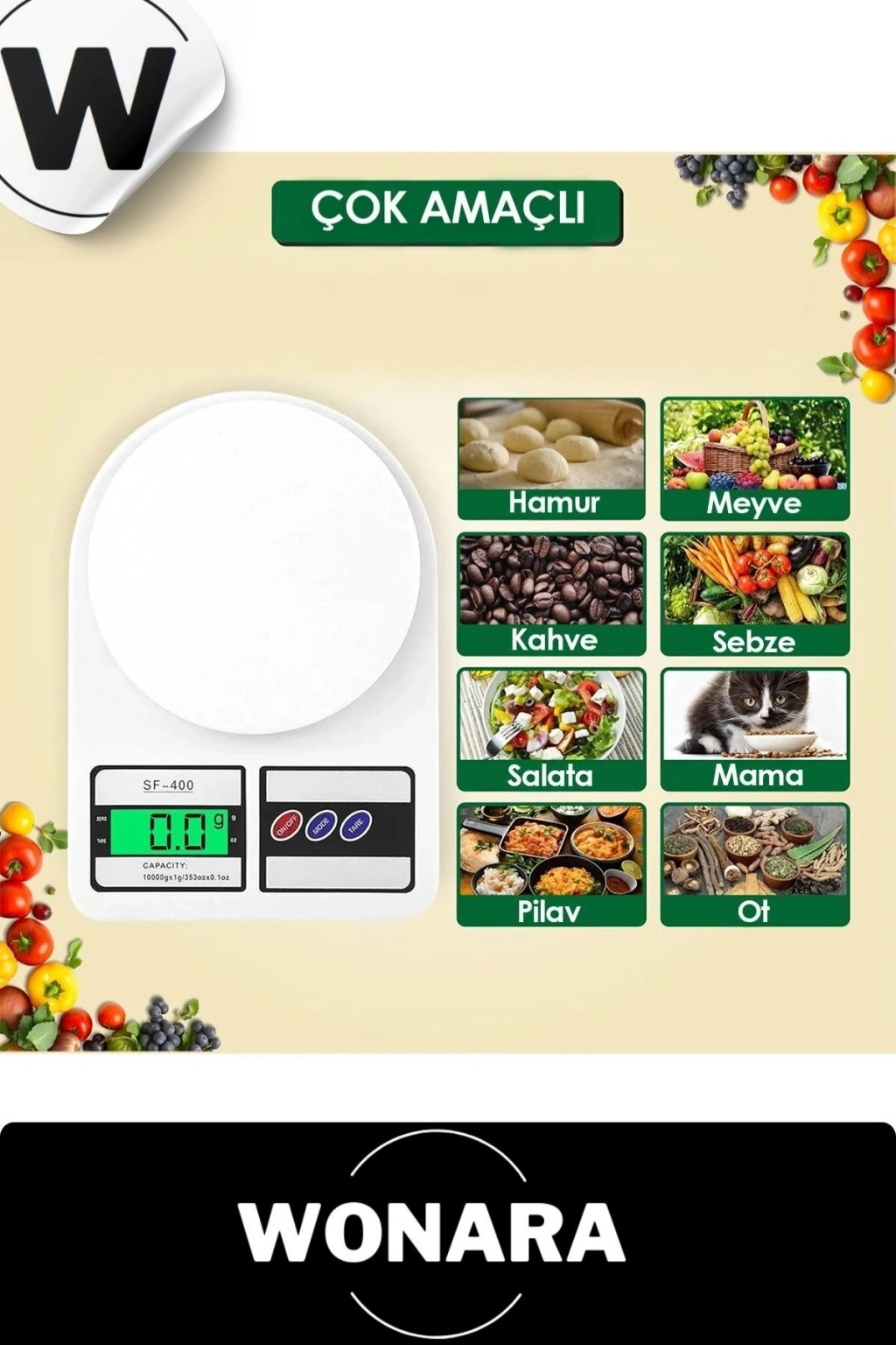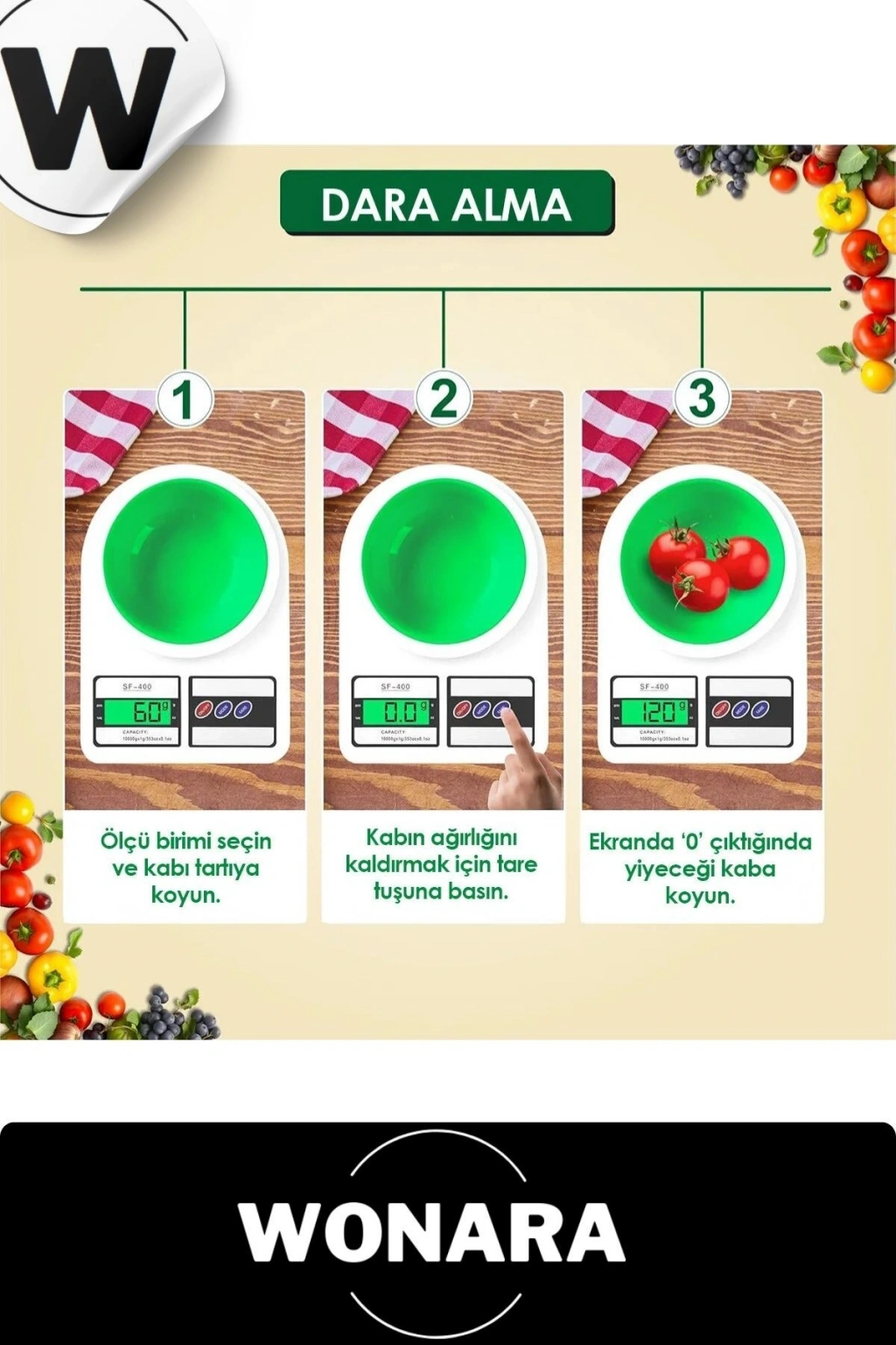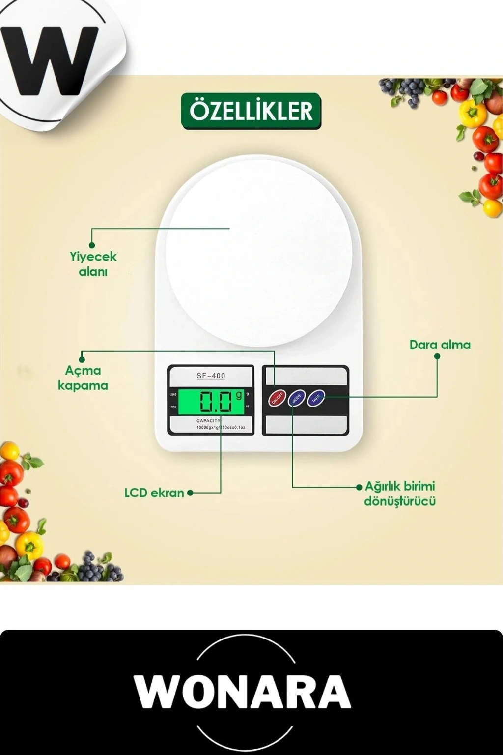 Deluxe Yüksek Hassasiyetli Pilli Mutfak Terazisi Dara Fonksiyonlu Otomatik Kapanma Özellikli Ölçer
