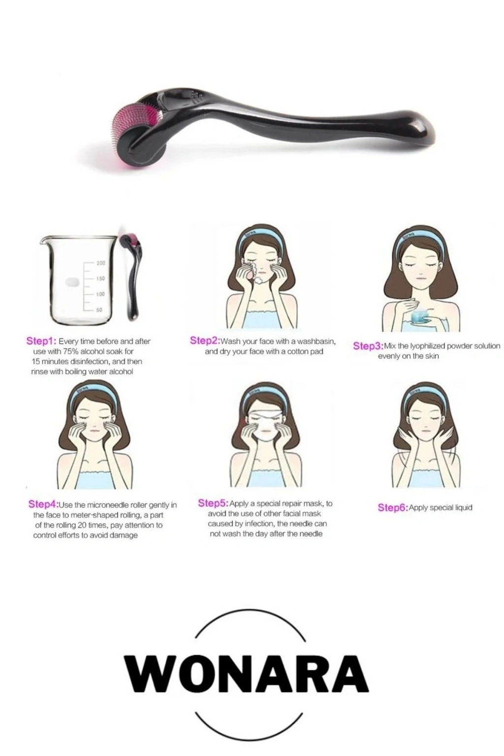 Derma Roller Titanyum İğneli Cilt Bakım Aleti Cildinizin yenilenmesine yardımcı olun! Derma Roller Titanyum İğneli Cilt Bakım Aleti, 540 adet 1.00 mm ölçüsünde titanyum iğneye sahiptir ve cilt üzerinde mikro-delikler açarak cildin kendini onarmasını sağlar. Ürün Özellikleri: İğne Sayısı: 540 adet İğne Ölçüsü: 1.00 mm Malzeme: Titanyum Kullanım Alanları: Göz Altı ve Çevresi: Hücre yenileme, krem emilimi Saç Canlandırma: Hafif kırışıklık, çizgiler, anti-aging Yüz ve Boyun: Hafif kırışıklık, çizgiler, hücre yenileme, anti-aging Cilt Lekeleri ve İzleri: Hücre yenileme, krem emilimi, anti-aging Öne Çıkan Avantajlar: Mikro-Travma Etkisi: Mikro iğnelerle açılan delikler, cildin kendini onarmasını ve kollajen üretimini artırır. Tedavi Edici Ürünlerle Kullanım: Tedavi edici ürünlerle birlikte kullanıldığında etkinliği 200 kata kadar artar. Az Acı: İnce iğneler sayesinde uygulama sırasında oluşacak acı yok denecek kadar azdır. Lokal anestezik kremlerle daha konforlu bir uygulama yapılabilir. Dikkat Edilmesi Gerekenler: İlaç Kullanımı: Işığa duyarlılık oluşturan ilaçlar kullanılıyorsa dikkat edilmelidir. Hastalıklar: . Kişiye Özel Kullanım: Cihaz kişiye özel olmalı ve başka biriyle paylaşılmamalıdır. Paket İçeriği: 1 Adet Titanyum İğneli Derma Roller Cilt Bakım Aleti