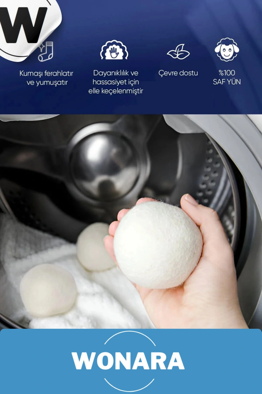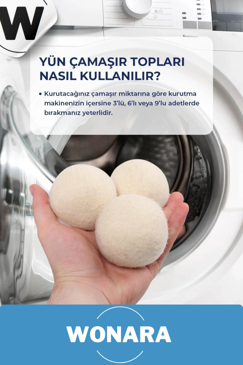 Ürün Özellikleri Bu 6'lı yün kurutma topu seti, çamaşırlarınızın kuruma süresini kısaltırken, ve çamaşırların daha yumuşak olmasını sağlar.; Yün malzemeden üretilmiş olan bu toplar, doğal ve kimyasal içermeyen bir şekilde çamaşırlarınıza zarar vermeden kurutma işlemini destekler.; Kurutma makinesinde kullanıldığında, hava dolaşımını artırarak çamaşırların daha hızlı kurumasına yardımcı olur.; Ayrıca, yün kurutma topları, kıyafetlerinizin birbirine sürtünmesini engelleyerek, kumaşın daha uzun süre dayanmasını sağlar.; Paket İçeriği 6 Adet Yün Kurutma Topu