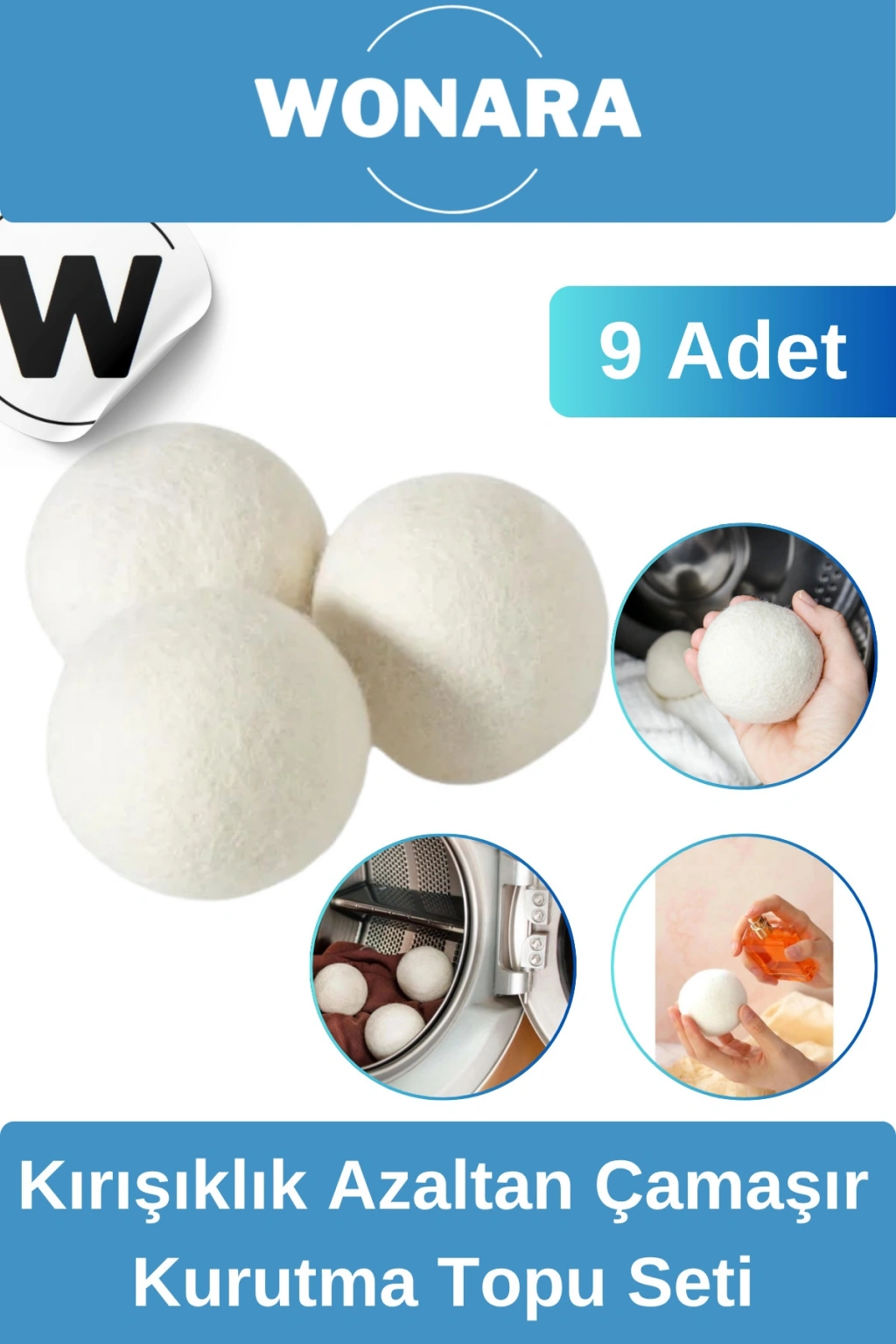 Ürün Özellikleri Bu 9'lu yün kurutma topu seti, çamaşırlarınızın kuruma süresini kısaltırken, ve çamaşırların daha yumuşak olmasını sağlar.; Yün malzemeden üretilmiş olan bu toplar, doğal ve kimyasal içermeyen bir şekilde çamaşırlarınıza zarar vermeden kurutma işlemini destekler.; Kurutma makinesinde kullanıldığında, hava dolaşımını artırarak çamaşırların daha hızlı kurumasına yardımcı olur.; Ayrıca, yün kurutma topları, kıyafetlerinizin birbirine sürtünmesini engelleyerek, kumaşın daha uzun süre dayanmasını sağlar.; Paket İçeriği 9 Adet Yün Kurutma Topu