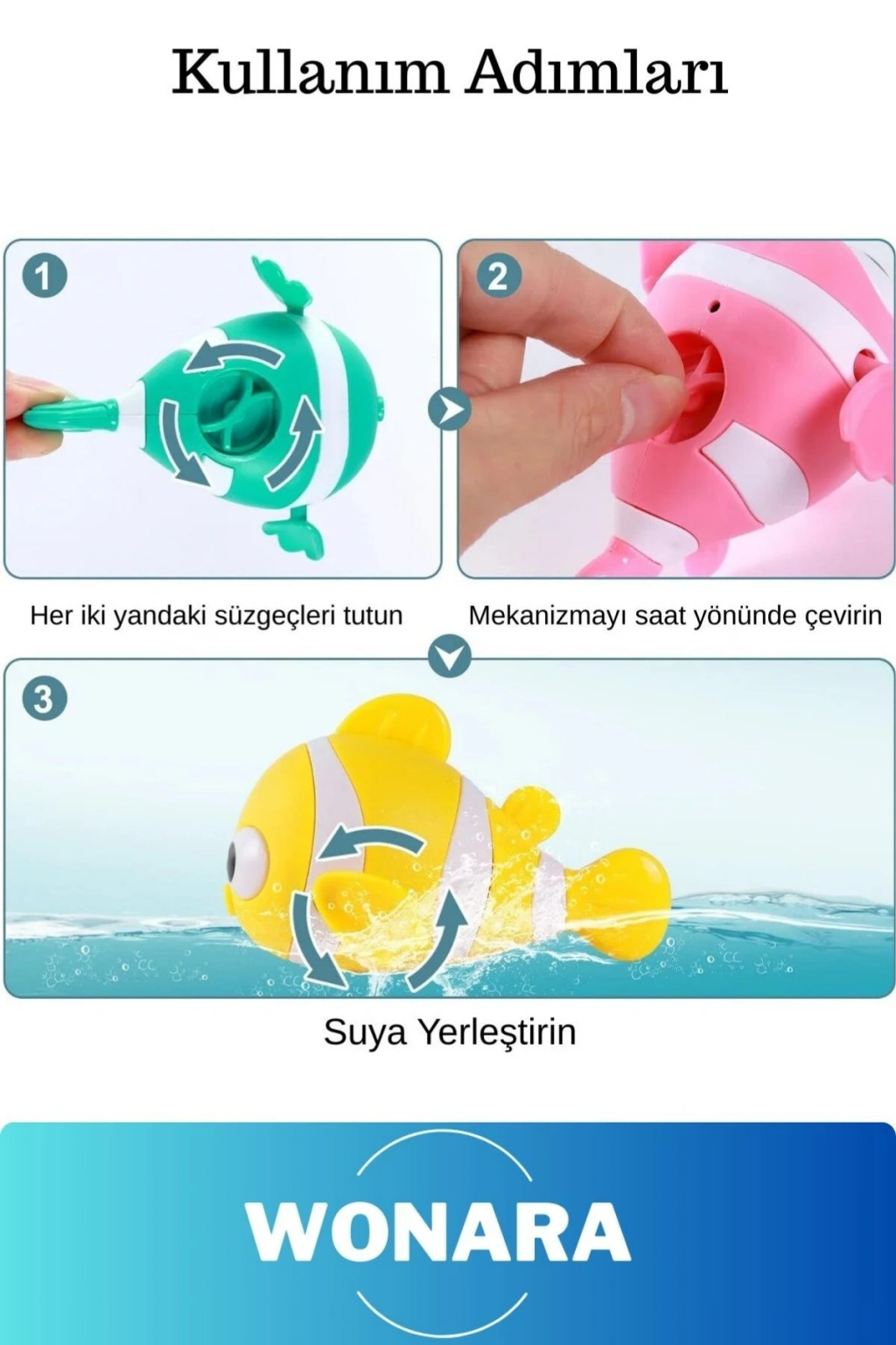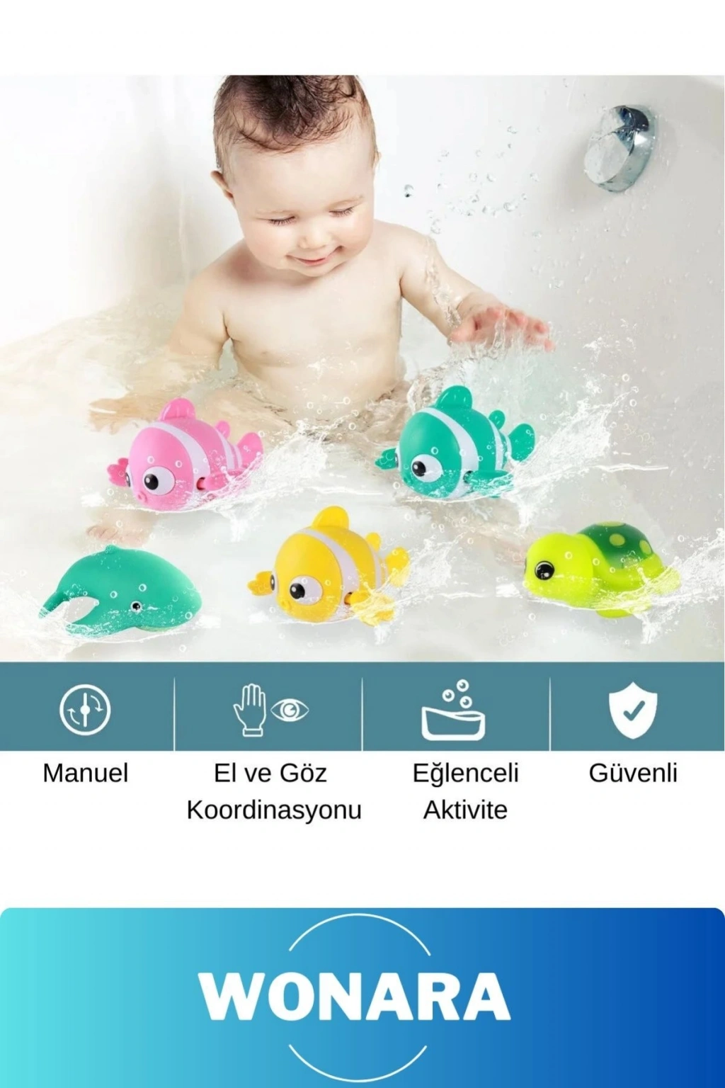 Çocuklarınız banyoda ve havuzda eğlenceli vakit geçirecek!Kurmalı Balık Bebek Banyo Oyuncağı, sevimli ve parlak renkli balık tasarımıyla çocukların ilgisini çekerken su ile oynama keyfini artırır.