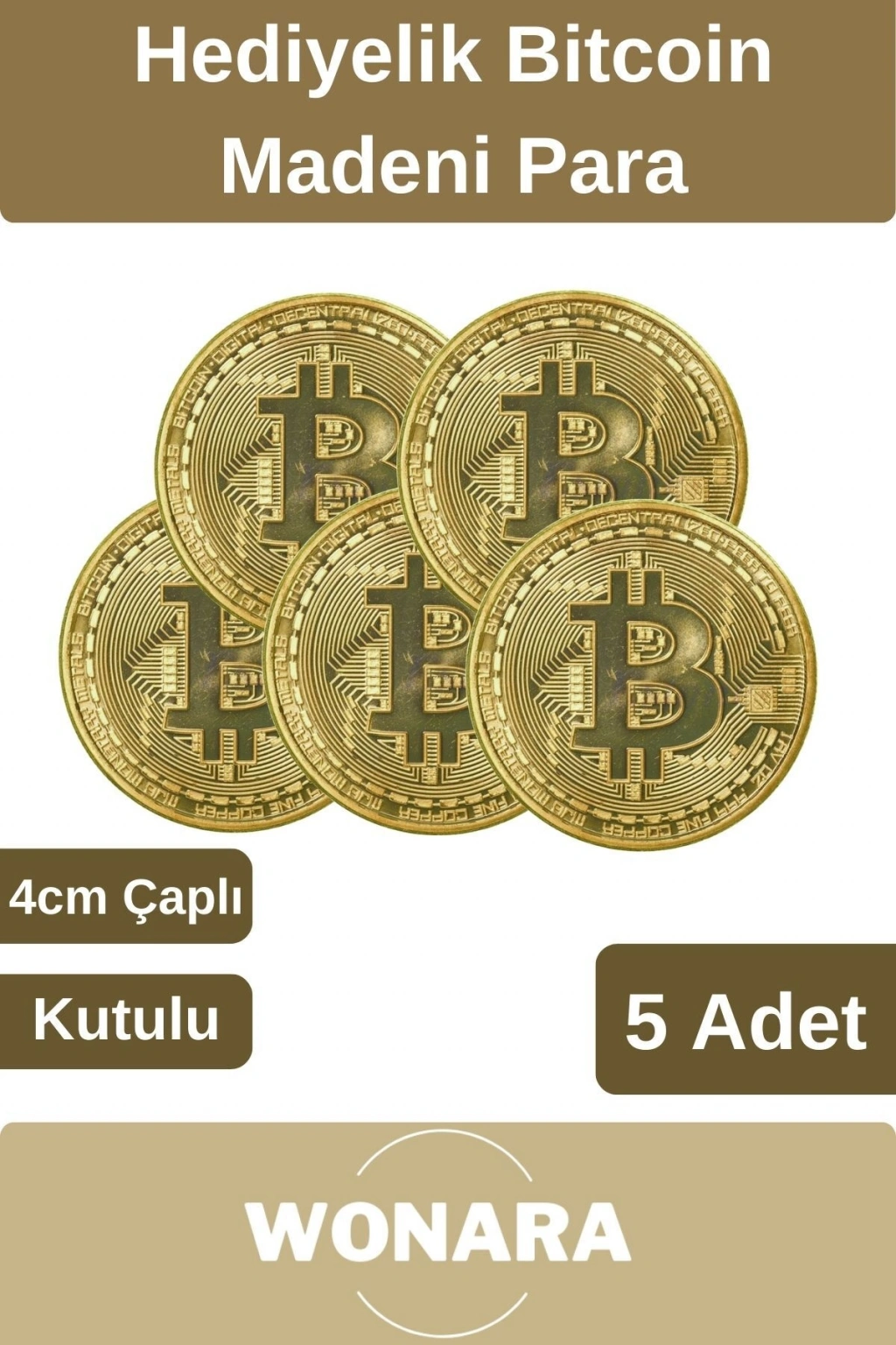 Özel Kutulu Altın Rengi Bitcoin Hatıra Parası Kripto Koleksiyonluk Hediyelik Madeni Para 5 Adet