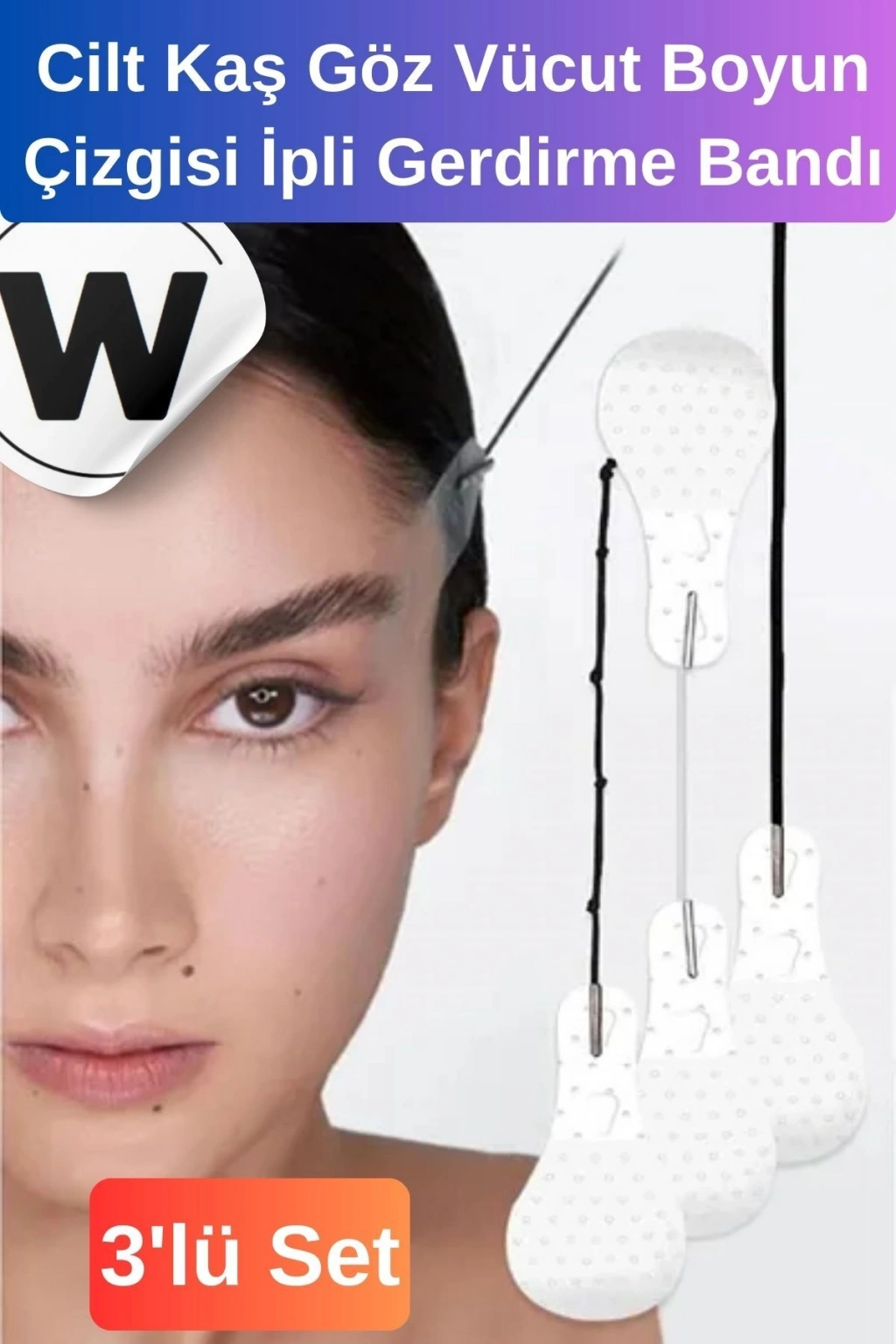 Özel Tasarım Günlük Cilt Kaş Göz Vücut Boyun Çizgisi Kaz Ayağı Pratik İpli Gerdirme Bandı 3'lü Set