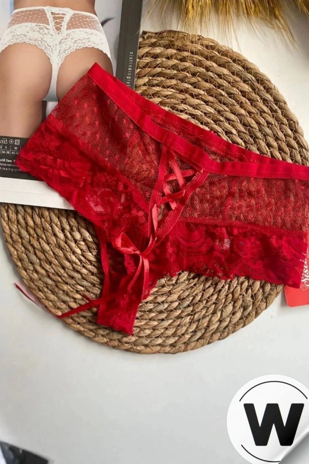 özel tasarımıyla dikkat çeken bu kırmızı kadın puanlı külot, transparan iç gösterme özelliğiyle cesur ve şık bir görünüm sunar.