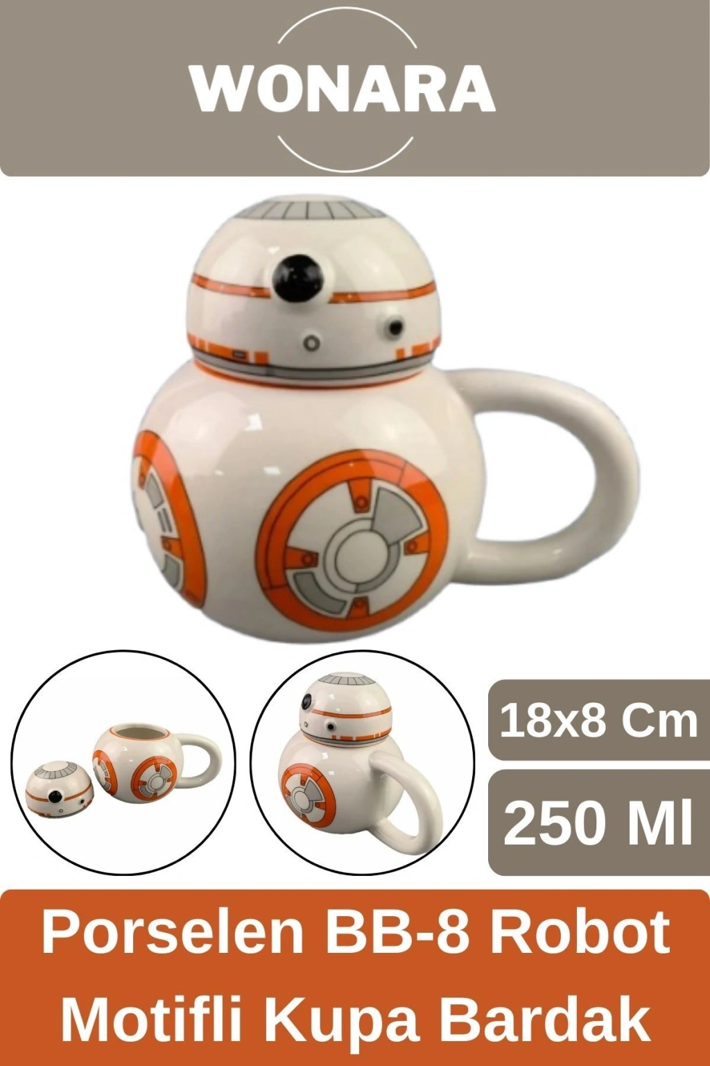 Özel Tasarım Sevgili Arkadaş Şık ve Dekoratif Hediyelik Porselen BB-8 Robot Motifli Kupa Bardak