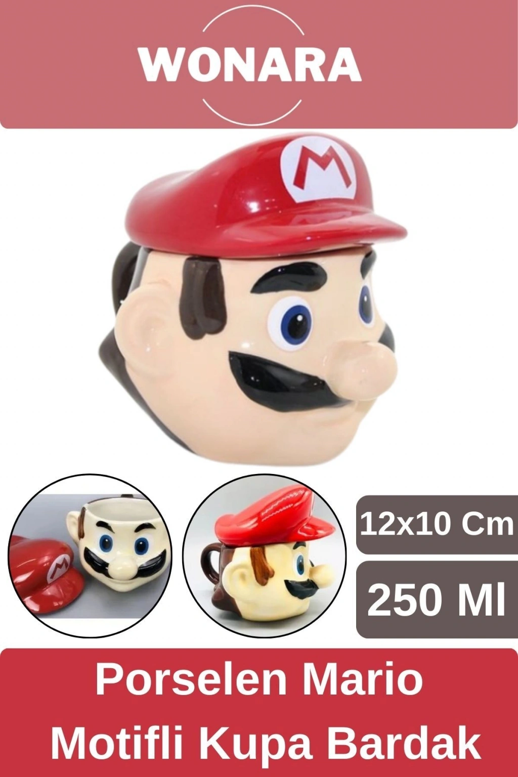Özel Tasarım Sevgili Arkadaş Şık ve Dekoratif Hediyelik Porselen Mario Motifli Kupa Bardak