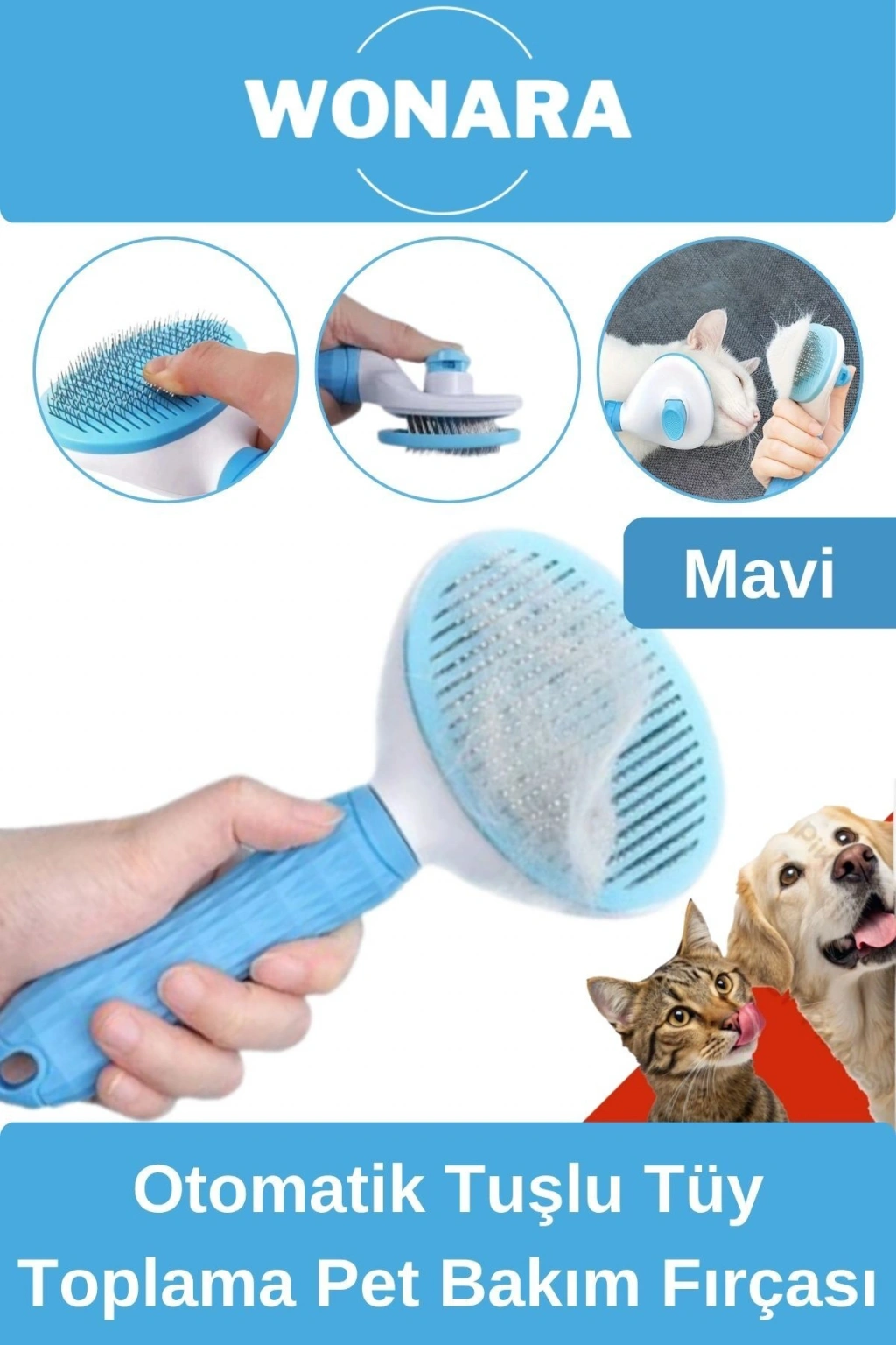 OTOMATİK TEMİZLENEN EVCİL HAYVAN TÜY TOPLAMA TARAĞI MAVİ Otomatik temizlenen tuşlu kedi köpek tarama fırçası, köpeklerinizin istenmeyen ve fazla uzamış tüylerini taradıktan sonra rahat ve kolay bir biçimde toplar.