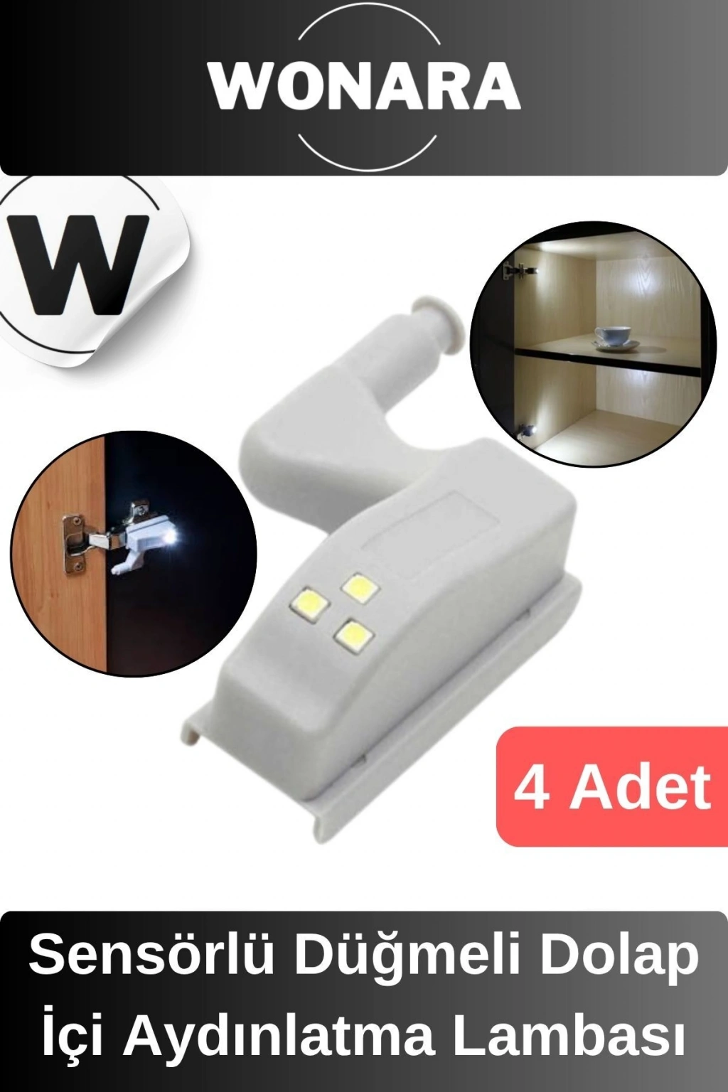 Ürün Özellikleri Gardıroplarınızın içindeki eşyalarınızı rahatça görebileceğiniz dolap içi aydınlatıcı ledler hayatınızı çok kolaylaştıracak.; Menteşelerinizin üzerine kolayca sabitleyebilirsiniz.; Dolap kapağını kapatıp açtığınızda led ışığın düğmesi aktif pasif olacak şekilde tasarlanmıştır.; Dolabınız içerisinde arayacağınız eşyalarınız için odanızın lambasını açmaya ihtiyaç duymazsınız.; Ürün tekli olarak gönderilmektedir.; Mutfak dolaplarınız, gardrobunuz için işlevsel bir aydınlatıcıdır.; Paket İçeriği 4 Adet Dolap İçi Otomatik Aydınlatma Lambası
