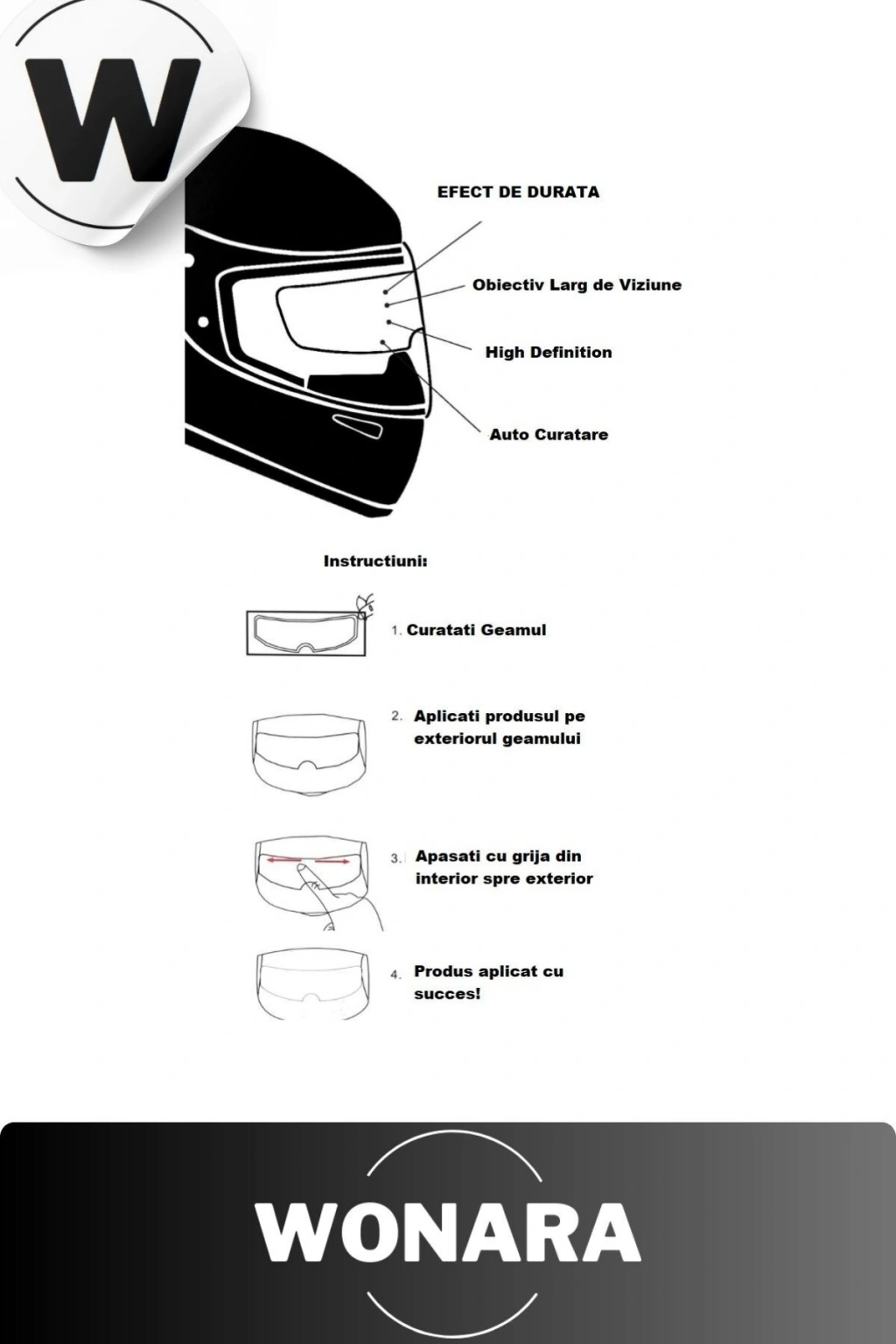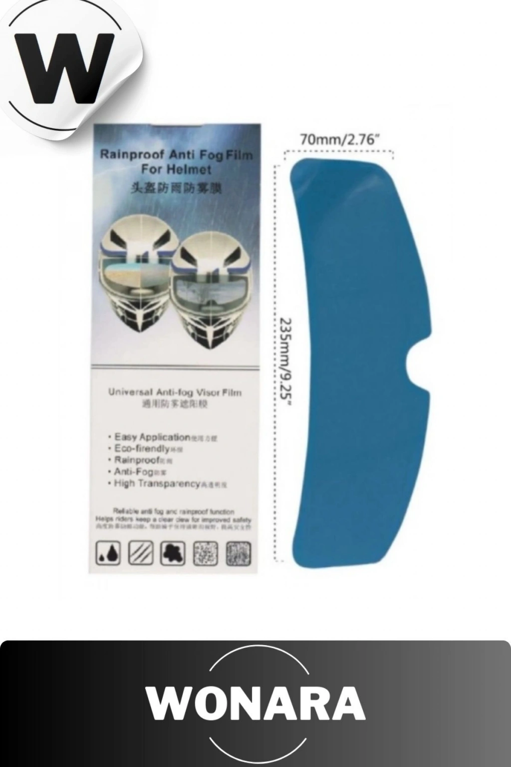 Motosiklet Kaskı Yağmur Kaydırıcı Kaskınızı yağmur geçirmez hale getirin ve kötü havalarda görüntünüzü etkilemez.; Uzun vadeli sürüşün neden olduğu kaza riskini azaltmak için buna ihtiyacınız var.; Tam/yarım/açık motosiklet kaskları için evrenseldir.; Kurulum Adımları Kask camını temizleyin ve koruyucu tabakayı yırtın.; Anti-yağmur filmi kask içine veya dışına yerleştirin (dahili anti-sis, harici anti-yağmur) Lensin ortasından kenara doğru anti-sis filmine hafifçe basın.; Kullanıma hazır Paket İçeriği 2 Adet Yağmur Kaydırıcı Film