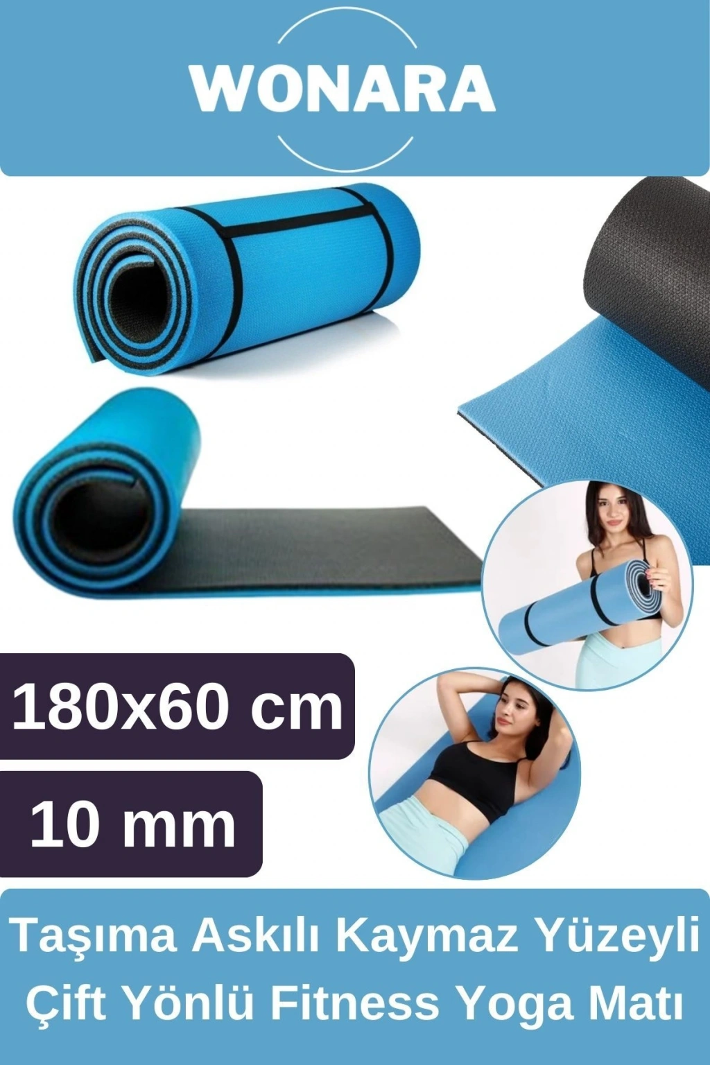 Pratik Taşıma Askılı Kaymaz Yüzeyli Çift Yönlü Fitness Yoga Matı Kamp Çadır Spor Minderi 180x60 Cm