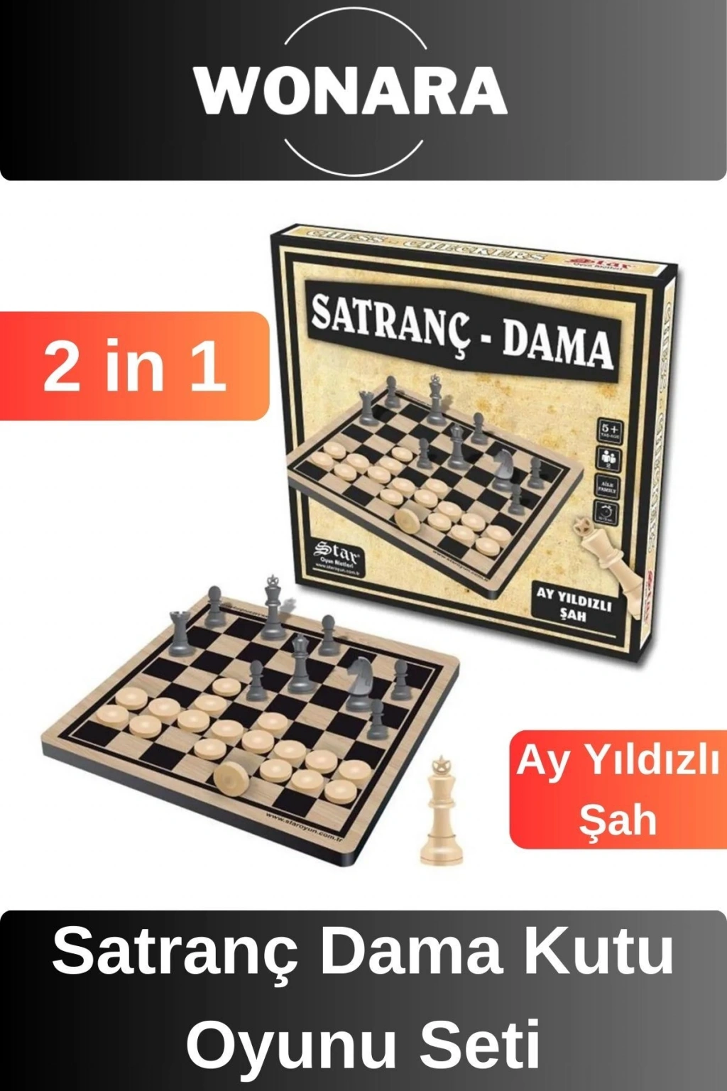 - Çocukların zihinsel gelişimini destekleyen eğitici oyun seti, satranç ve dama oyunlarını bir arada sunar.