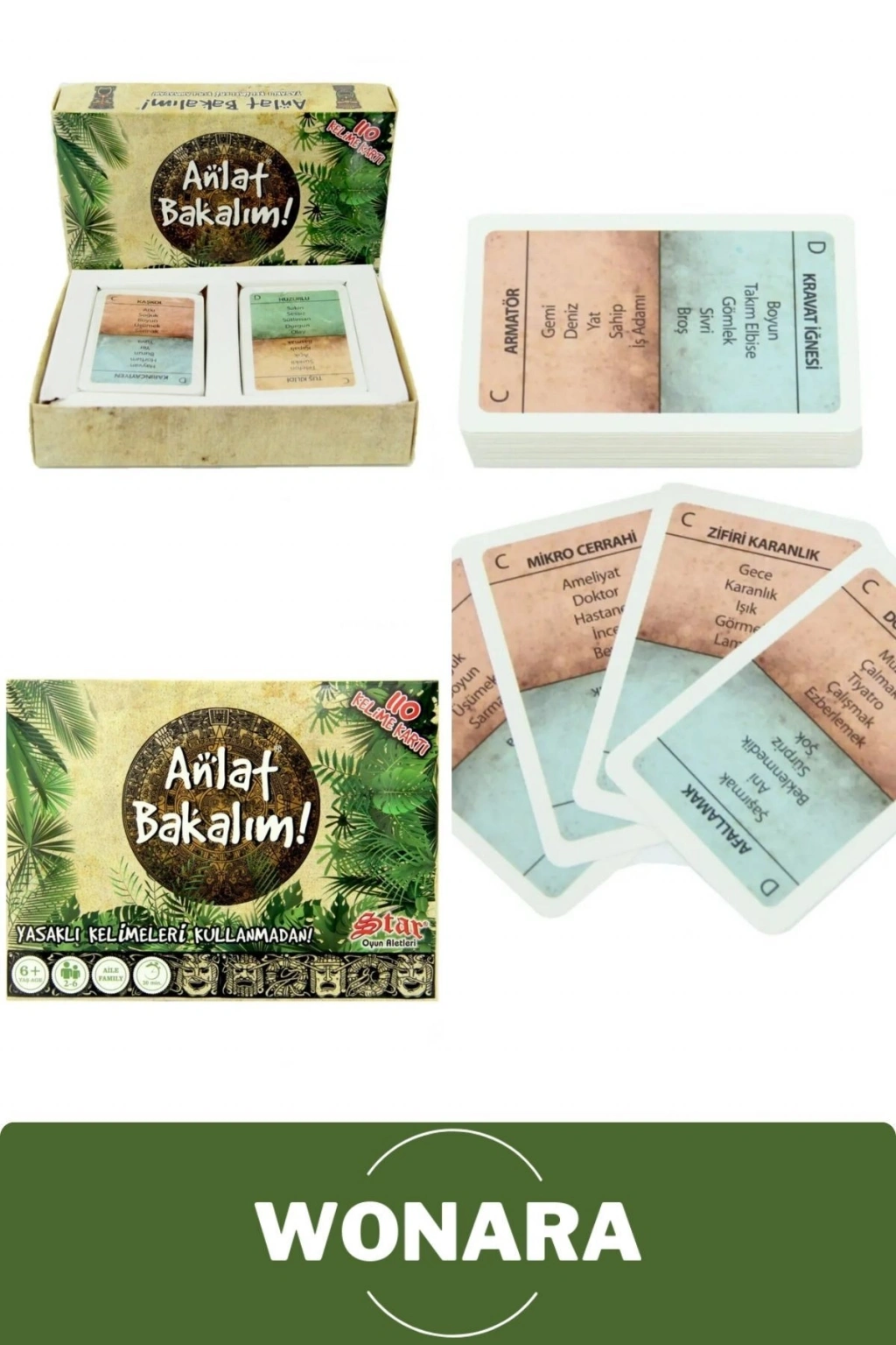 Takımlar halinde oynanır.; Takımlar karşılıklı oturur.; Bir takım oyuncusu kelime anlatırken diğeri süre tutar.; Kelime anlatılan takım oyuncusu elinde ki kartı kimseye gösteremez.; Kartı anlatan oyuncu takım arkadaşlarına alttaki kelimeleri kullanmadan ip ucu vermeli ve takım arkadaşlarının hızlıca tahmin etmelerini sağlamalı.; Yanlış tahminler için herhangi bir ceza verilmez.; Zor bir kart gelirse pas diyerek kartı geçebilirsiniz.; Süreniz dolana kadar kelime anlatmaya devam edin.; Paket içerisinde 55 x 2 Toplam 110 kart bulunur.;