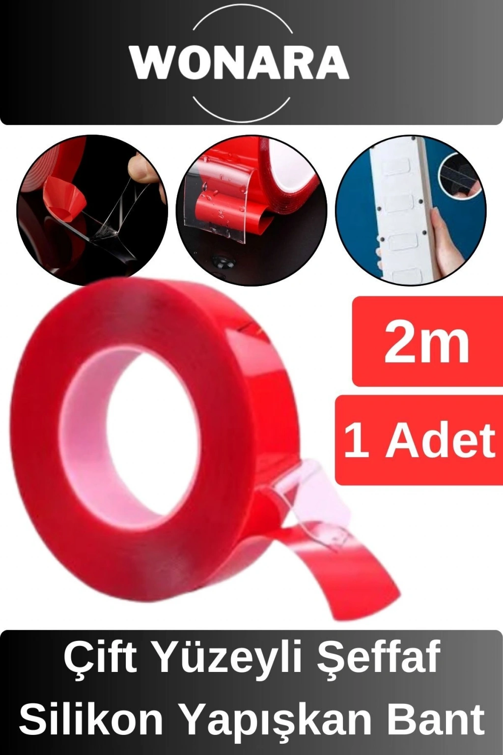 Premium Ekstra Sağlam Çift Yüzeyli Çok Amaçlı Tamir Montaj İçin Şeffaf Silikon Yapışkan Bant 1 Adet