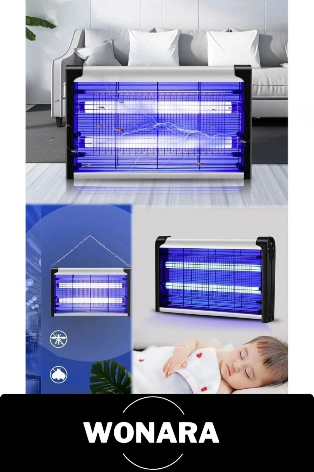 Premium Güçlü Ultraviyole Işıklı Ev Duvar Tipi Haşere Böcek Öldürme Lambası Sinek Sivrisinek Tuzağı