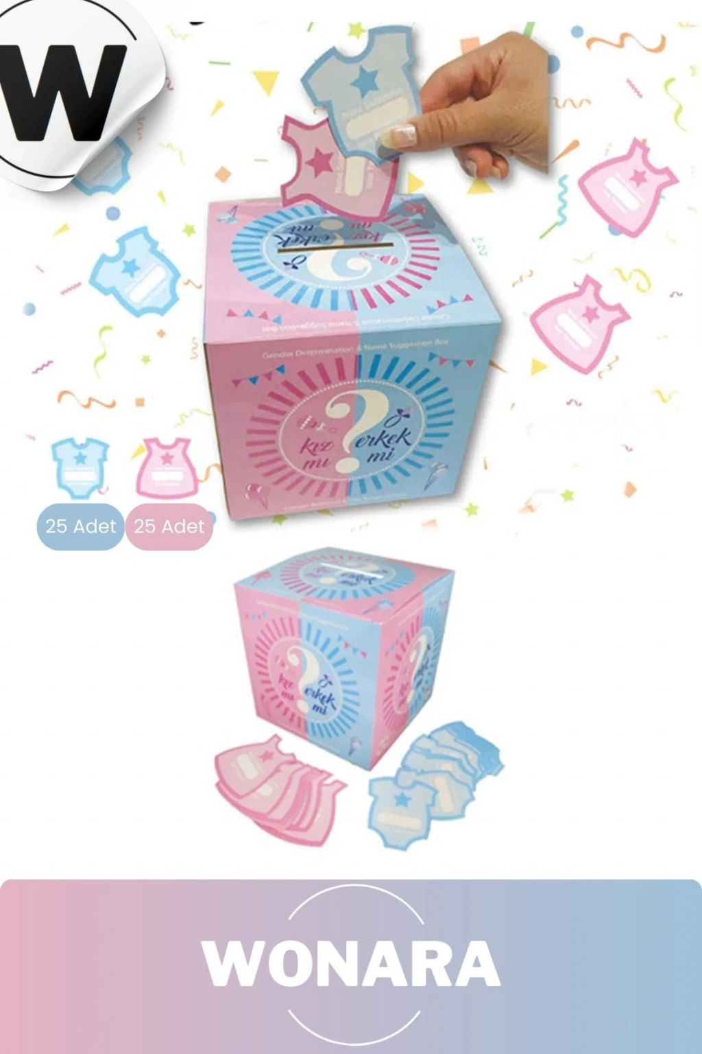 Premium Keyifli Bebek Cinsiyet Partisi Oylama Kutusu Misafirler İçin 50 Kart Kız Mı Erkek Mi Oylama