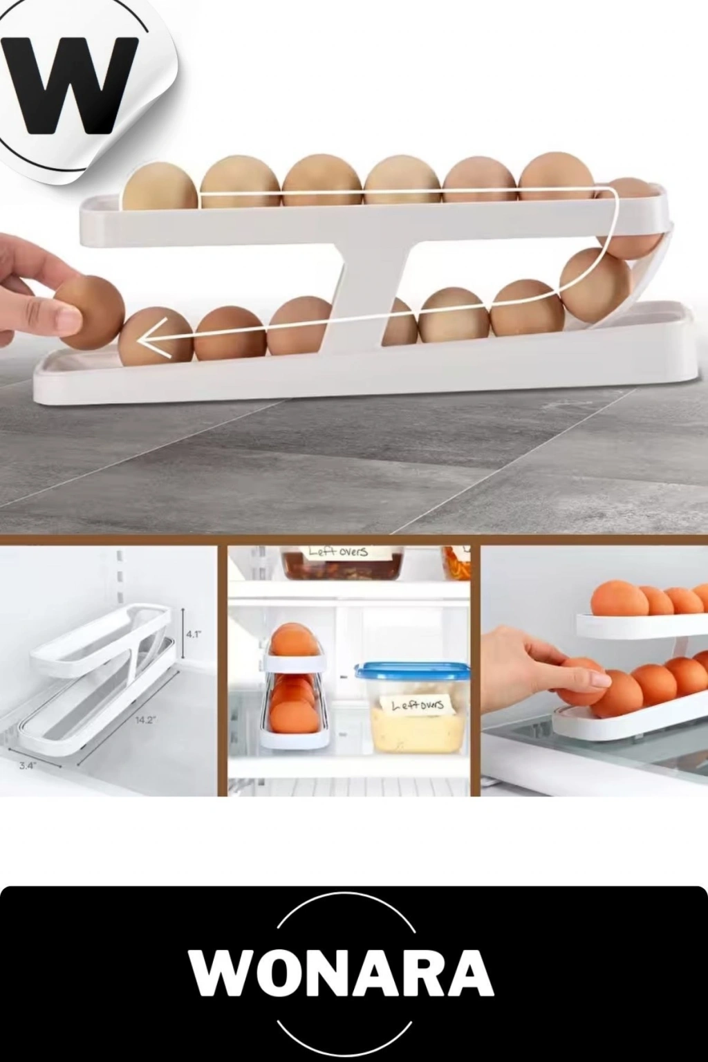 Premium Plastik 2 Katlı Otomatik Geniş Kapasiteli Yuvarlanan Yumurta Saklama Düzenleyici Rafı 1 Adet
