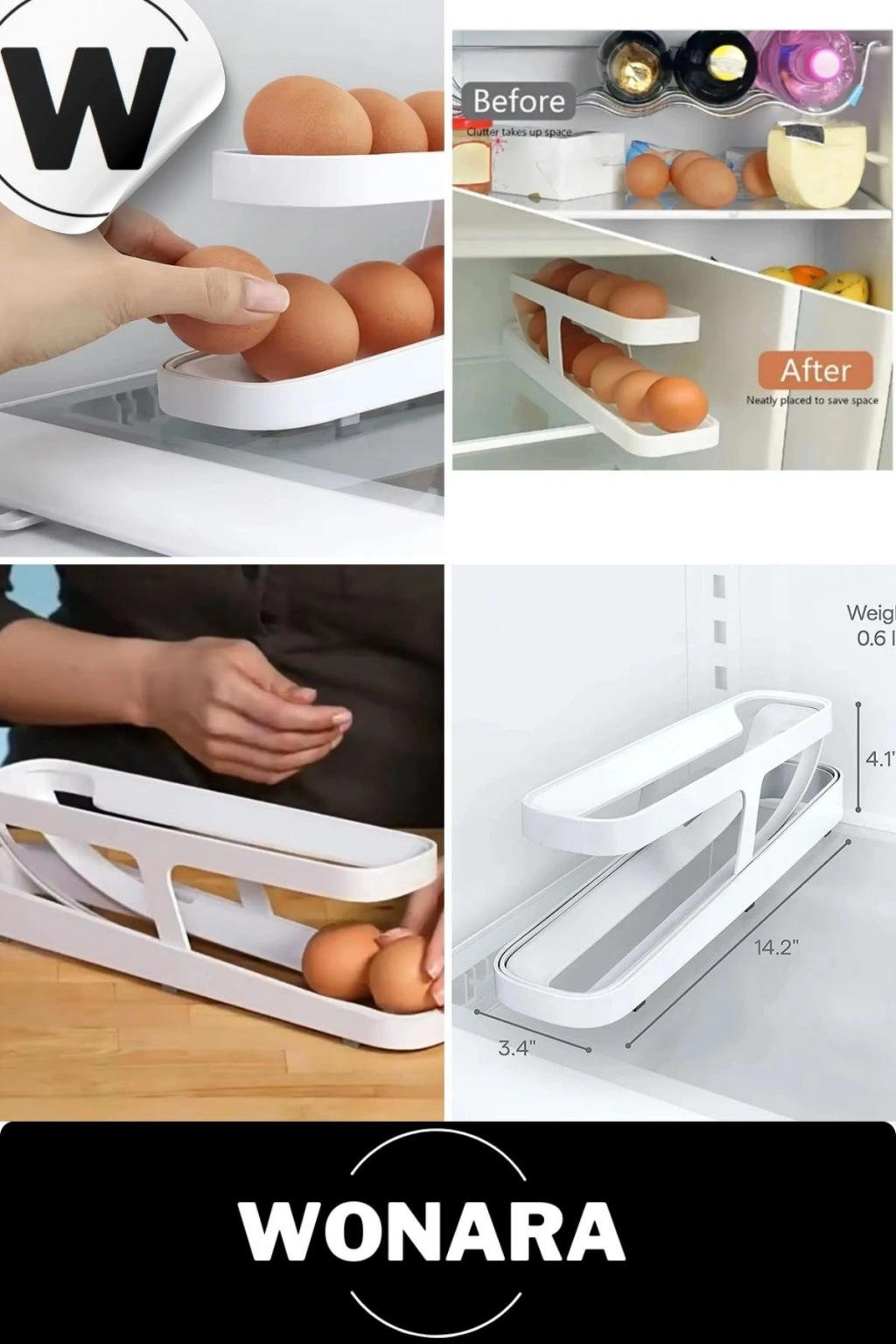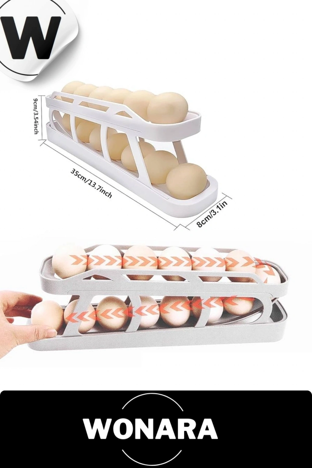 Premium Plastik 2 Katlı Otomatik Geniş Kapasiteli Yuvarlanan Yumurta Saklama Düzenleyici Rafı 1 Adet
