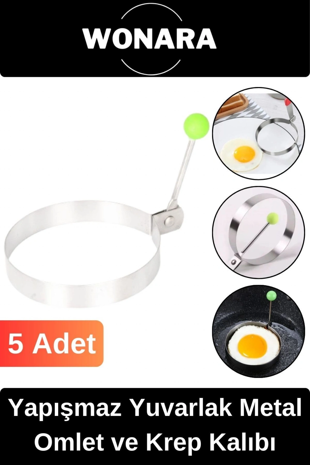 Premium Seri Yapışmaz Kaplamalı Dayanıklı Şık Tasarımlı Yuvarlak Metal Omlet ve Krep Kalıbı 5 Adet