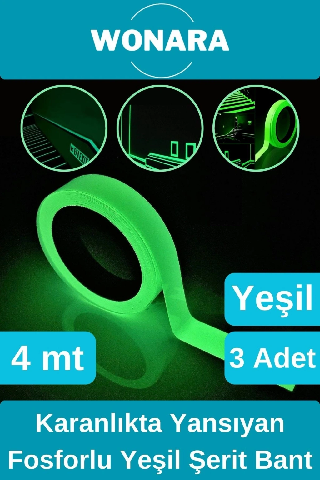 Olası acil durumlar göz önünde bulundurularak, çıkıntı ve köşeler, sütunlar, paneller, asansör kabinleri, güvenlik malzemeleri, Fosforlu Şerit Bant ile donatılmalıdır.; ; Photoluminescent ışıldayan malzeme, gelen ışık enerjisini emerek depo eder (15-30 dakika) ve daha sonra kademeli olarak yansıtır.; ; Doğal ve suni aydınlatma kaynakları, bu malzeme için şarj görevi yapar.; ; Fosforlu Şerit Bant, ışıkların ve diğer elektrik devrelerinin ani olarak kesilmesi durumunda insanların karanlıkta dışarı çıkmak için yollarını kolayca bulabilmelerini sağlar.; ; Zemin yapışkanı silikon esaslı akrilik olduğu için yüzeylere çok kuvvetli yapışmayı garantiler.; ; Bu bantların esnek ve kesilebilir özelliğinden dolayı kullanıcılara opsiyonel kullanım imkanı sağlar.; ; Yatlar, gemiler, hastaneler, askeri alanda, endüstriyel yapılar, hoteller, depolar, alışveriş merkezleri, binalar vb.; alanlarda fosforlu özelliği sayesinde acil çıkış ve yön tayini görevlerinde kullanılır.; ; Ürün Özellikleri ; Acil durumlarda, yönünüzü bulmanızı sağlar.; ; Fosfor özelliğini kaybetmez.; ; Herhangi bir elektrik enerjisine ihtiyaç duymaz.; ; Ürün Ölçüleri ; Uzunluk 400 cm.; ; Genişlik 2 cm.