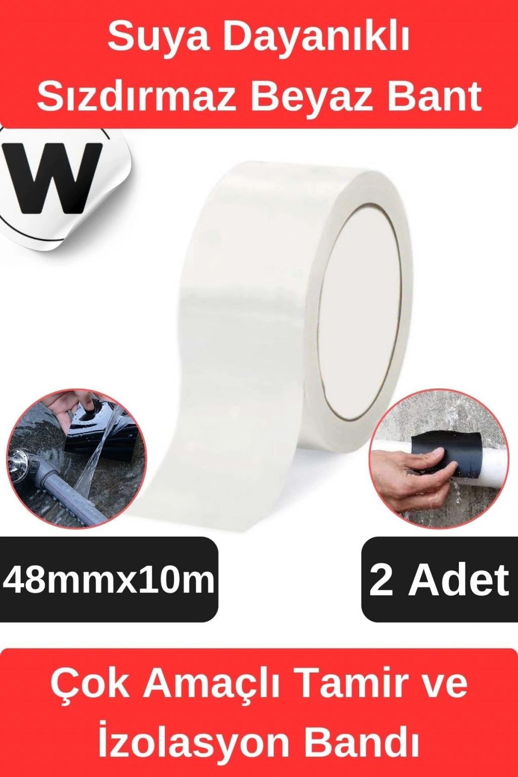 Sızdırmaz Suya Dayanıklı Beyaz Renk Çok Amaçlı İzolasyon ve Tamir Bandı 10m 2 Adet