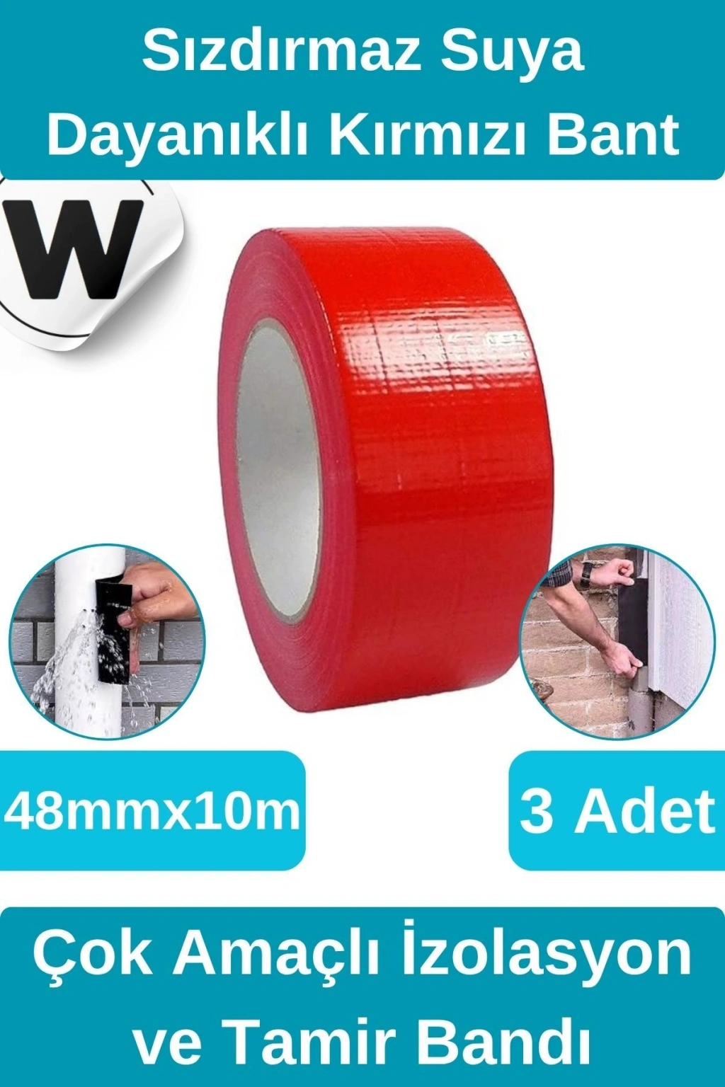 Sızdırmaz Suya Dayanıklı Kırmızı Renk Çok Amaçlı Tamir ve İzolasyon Bandı 10m 3 Adet