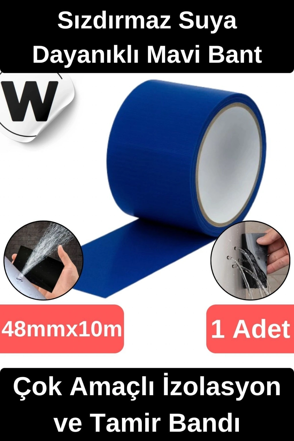 Sızdırmaz Suya Dayanıklı Mavi Renk Çok Amaçlı Tamir ve İzolasyon Bandı 10m 1 Adet