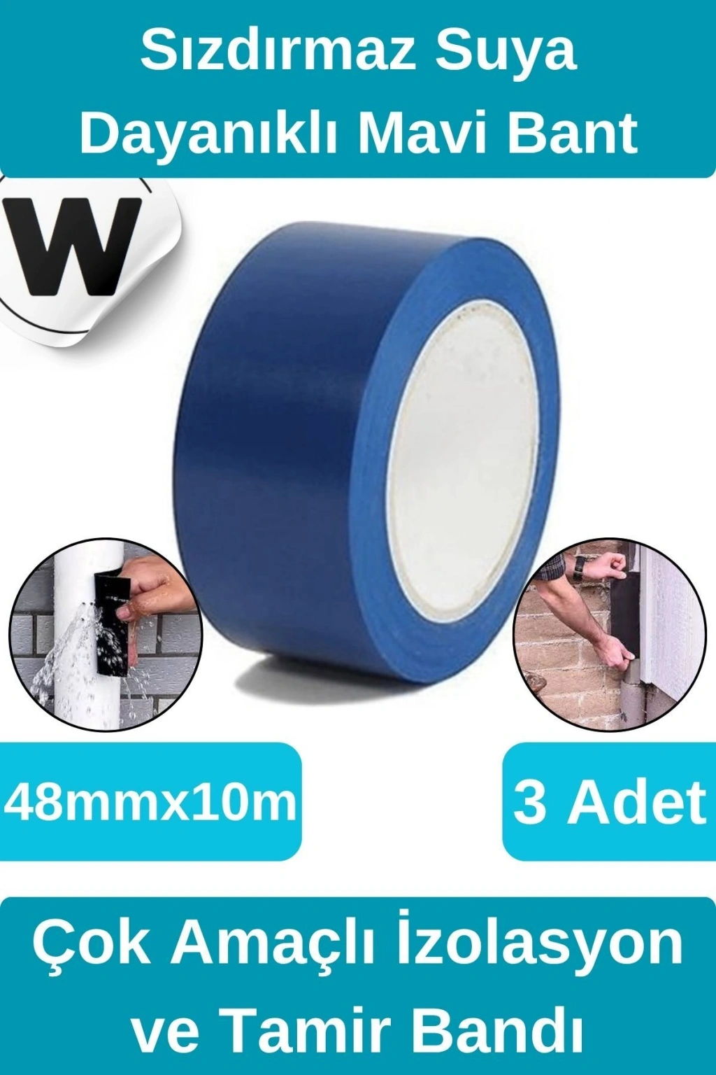 Sızdırmaz Suya Dayanıklı Mavi Renk Çok Amaçlı Tamir ve İzolasyon Bandı 10m 3 Adet