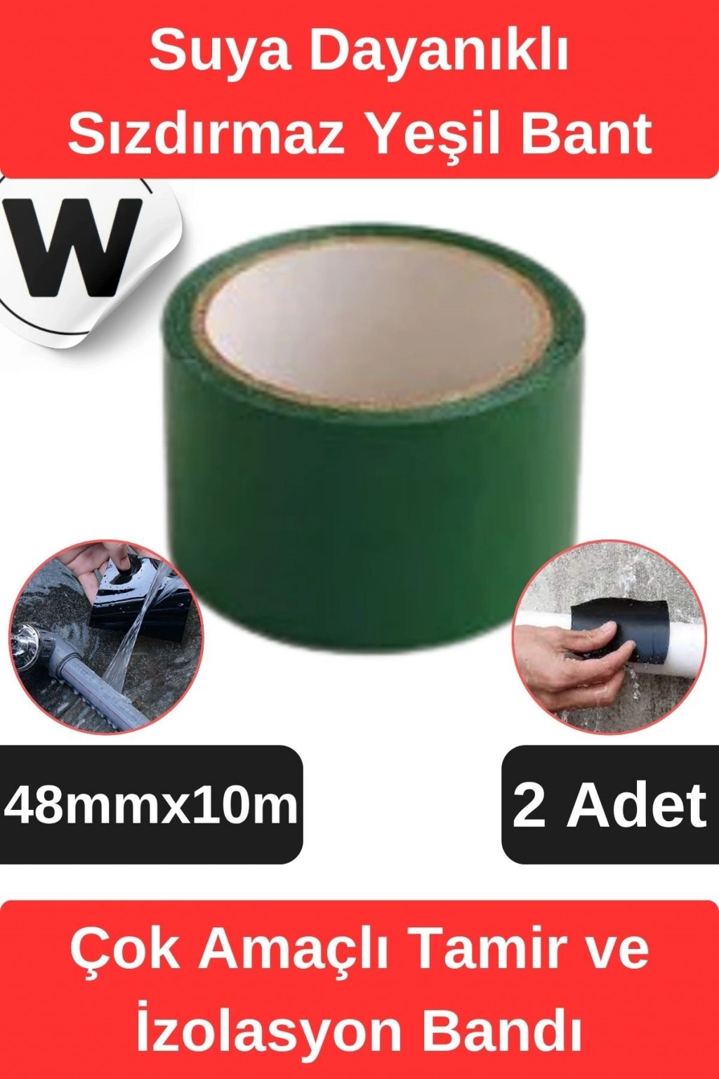 Sızdırmaz Suya Dayanıklı Yeşil Renk Çok Amaçlı Tamir ve İzolasyon Bandı 10m 2 Adet