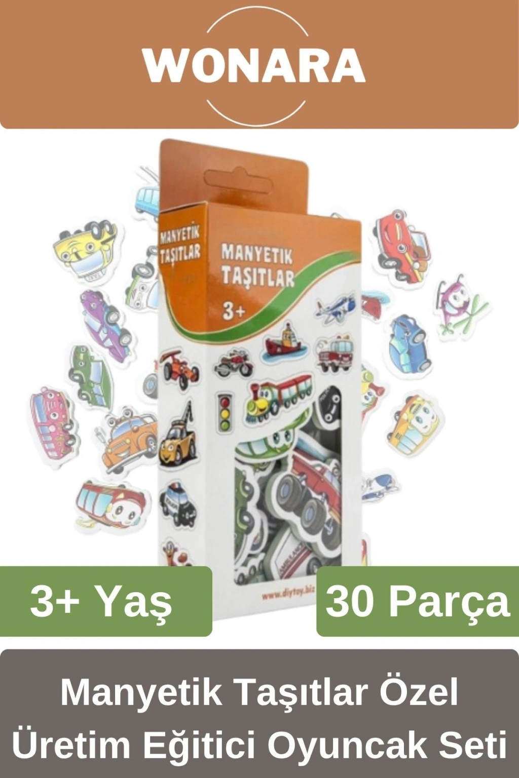 Manyetik Taşıtlar Seti ile çocuklar eğlenceli dakikalar geçirecekler! Manyetik taban sayesinde manyetik yazı tahtası, buzdolabı ve diğer metal yüzeylere kolayca yapışabilir.; Çocuklar manyetik araçların yer aldığı bu seriyi çok sevecek! Çocukların hayal güçlerinin ve yaratıcılıklarının gelişmesine katkıda bulunur.; Motor becerilerini daha iyi kullanmaya olanak tanır.; Sosyal aktiviteyi destekler ve parça bütün ilişkisini geliştirir.; Kutu içerisinde; 30 adet manyetik taşıt parçaları yer almaktadır.; Kutu ölçüsü: 11 x 6 x 21 cm Ağırlık: 0,105 kg